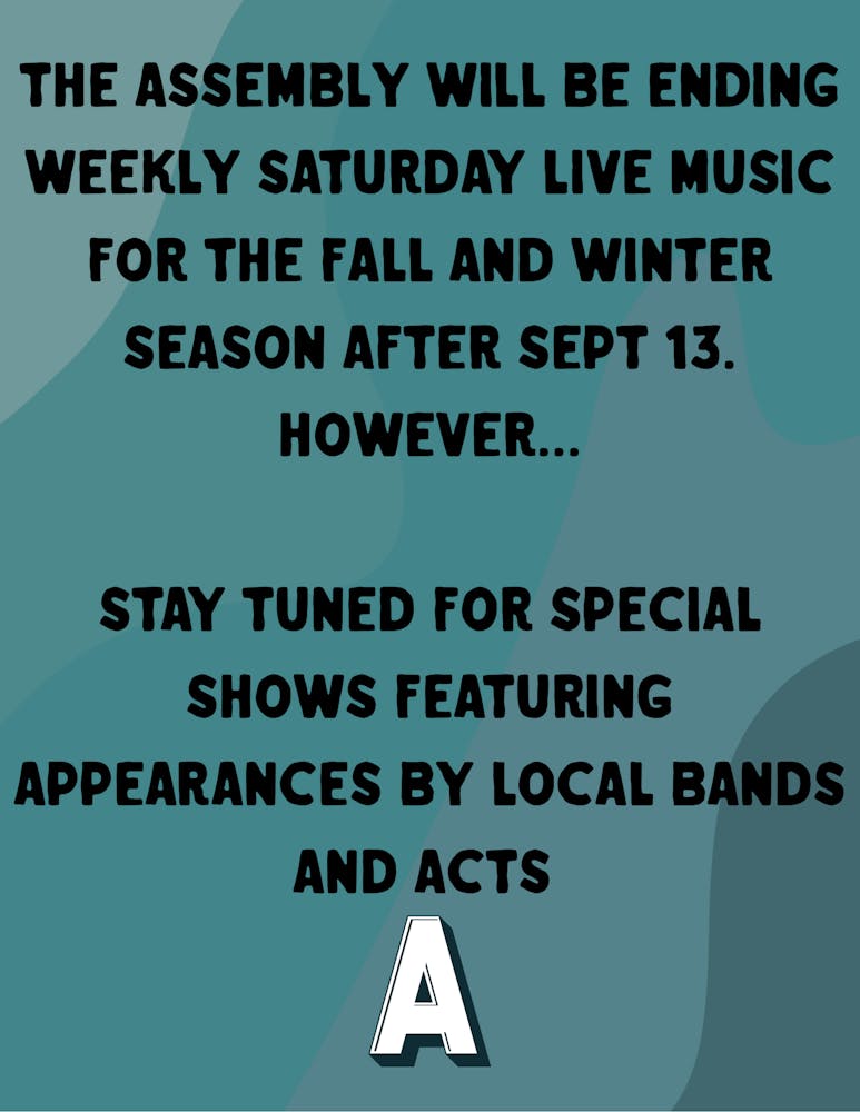Local Artists showcase their musical talent every Saturday here at Assembly. Saturday's we offer our full menu until 10pm and our late night food menu up until 11:30pm.