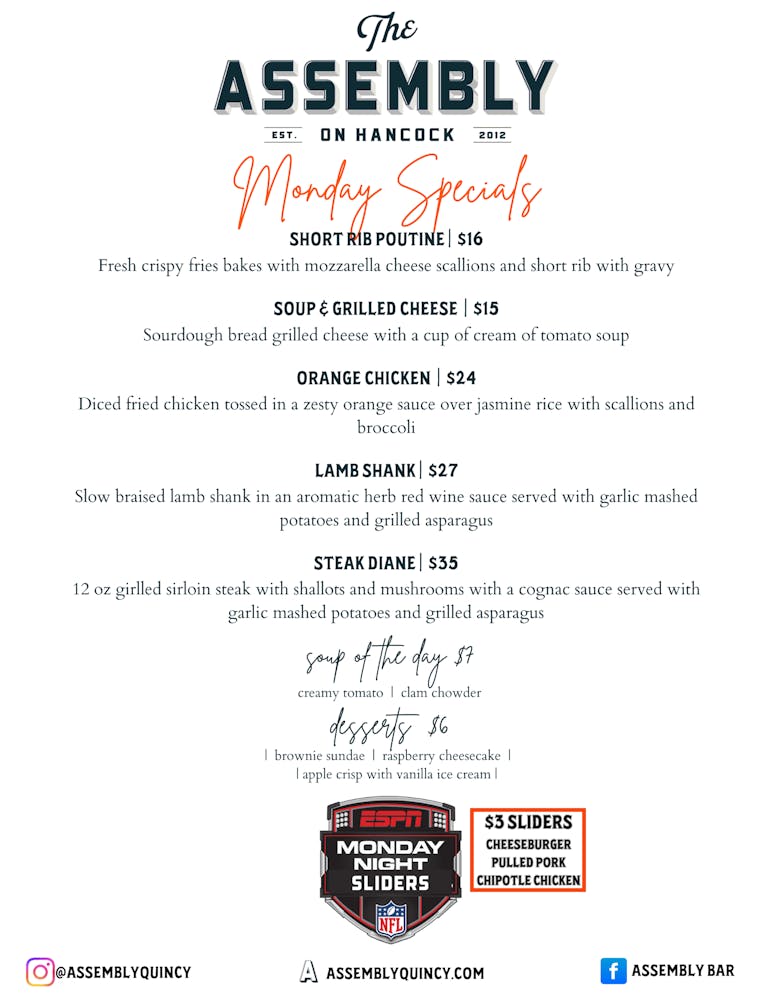 Late Night Menu Available Friday and Saturday Night 10pm-11:30pm