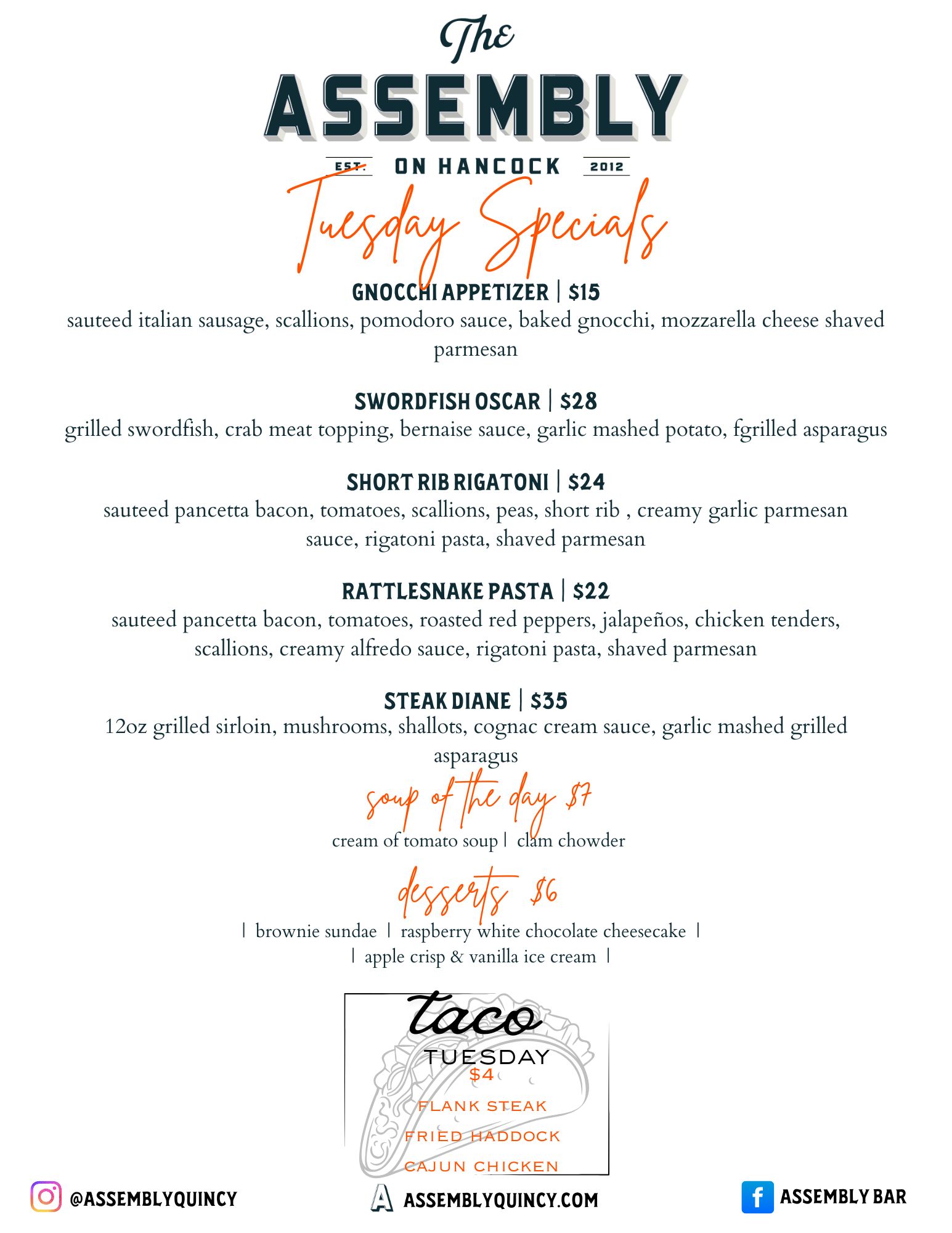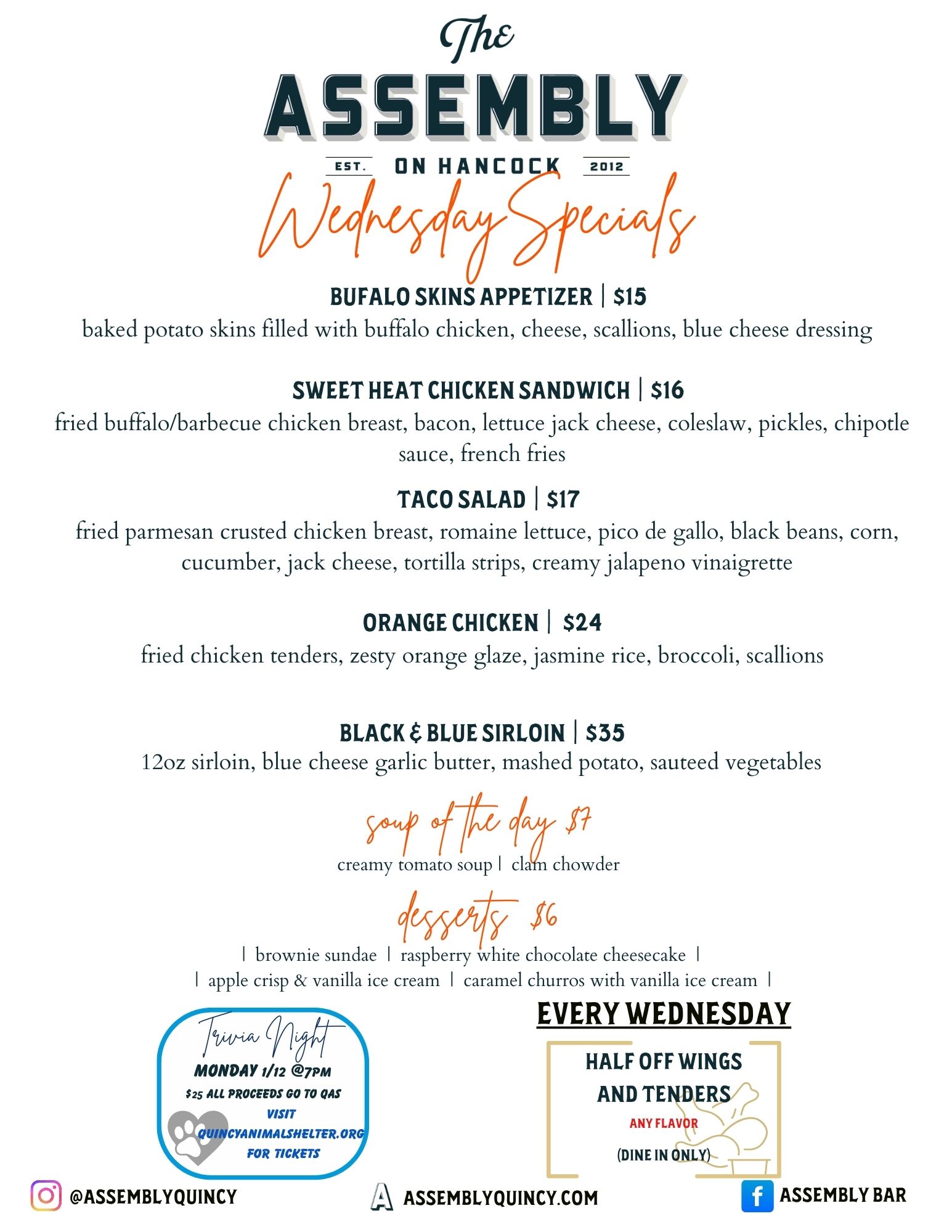 Late Night Menu Available Friday and Saturday Night 10pm-11:30pm